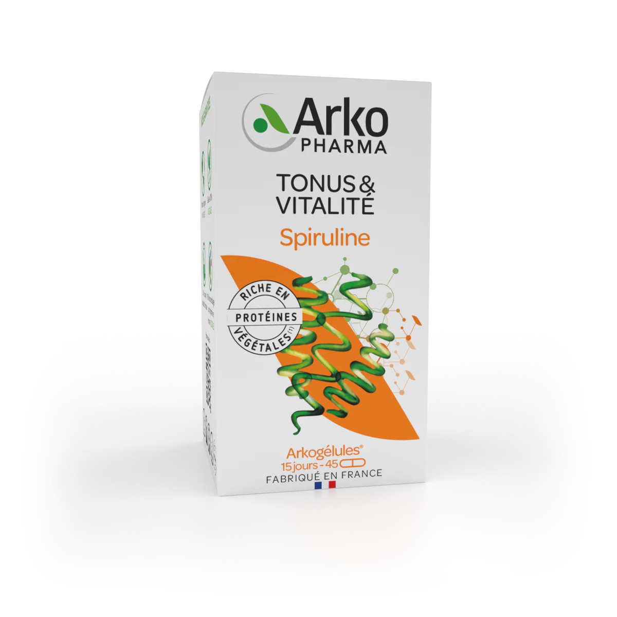 Arkogélules BIO Spiruline est un complément alimentaire biologique conçu pour aider à retrouver tonus et vitalité, notamment en cas de fatigue passagère. La spiruline, une micro-algue riche en nutriments, est reconnue pour ses propriétés revitalisantes, soutenant ainsi l’énergie et le bien-être général.