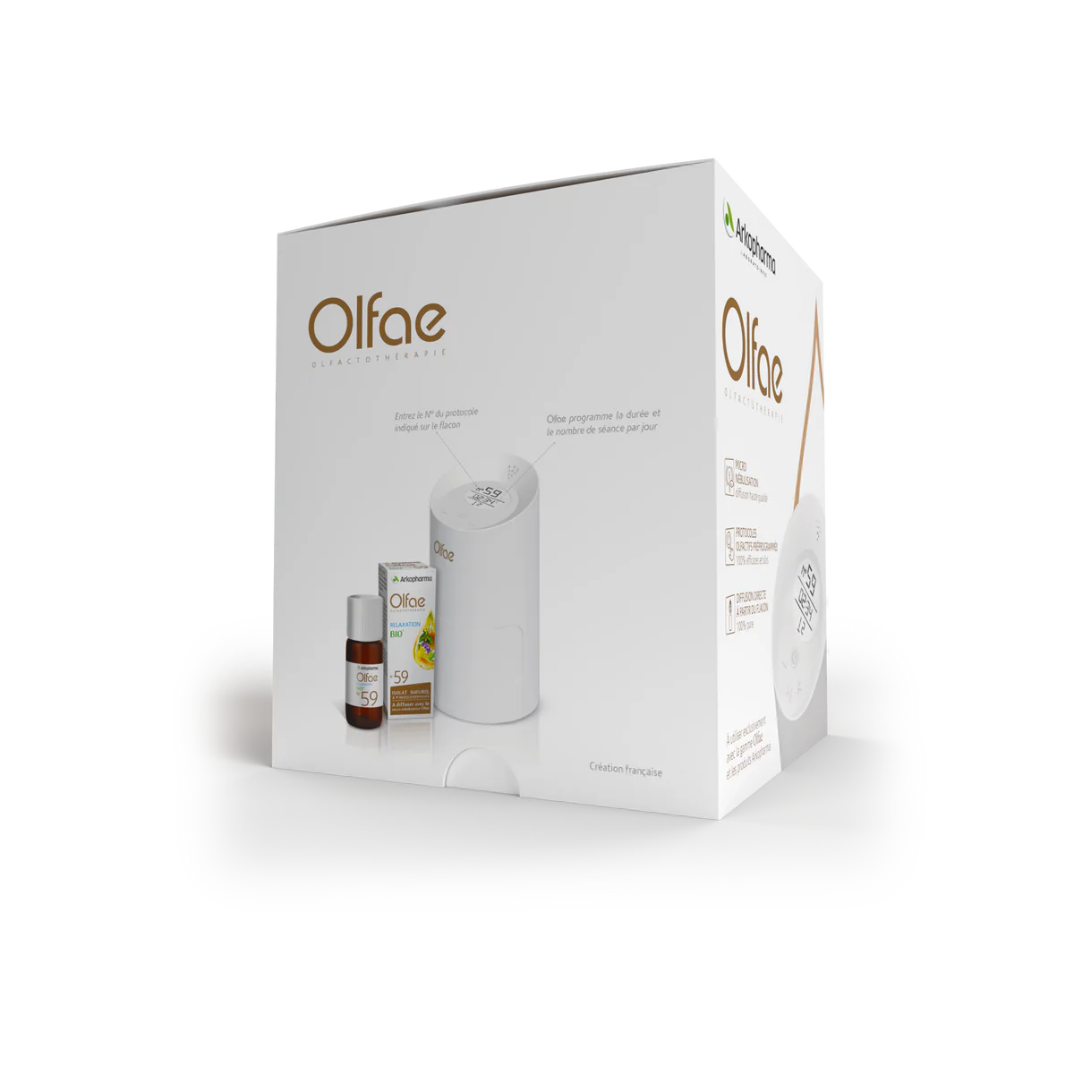 - L’efficacité et la sécurité du système Olfae® sont garanties exclusivement avec l’utilisation des produits Olfae® et Arkopharma.