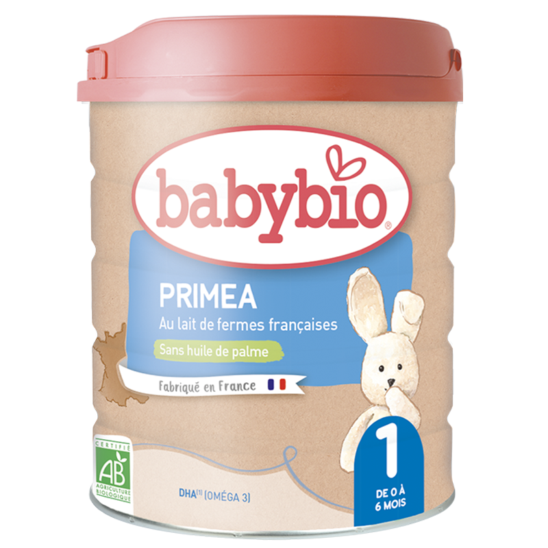 Lait bio Primea 1er Âge Babybio, une formule complète et équilibrée pour les nourrissons dès la naissance.