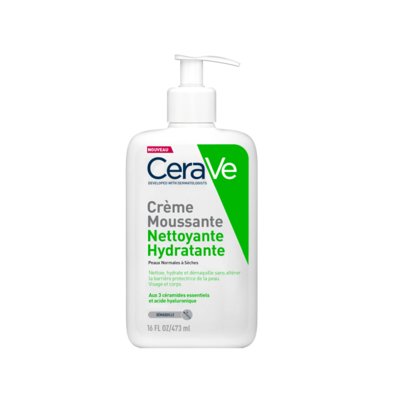 La Crème Moussante Nettoyante Hydratante de CeraVe élimine efficacement les impuretés tout en préservant l’hydratation naturelle de la peau. Sa formule enrichie en céramides et acide hyaluronique assure un nettoyage doux et nourrissant.