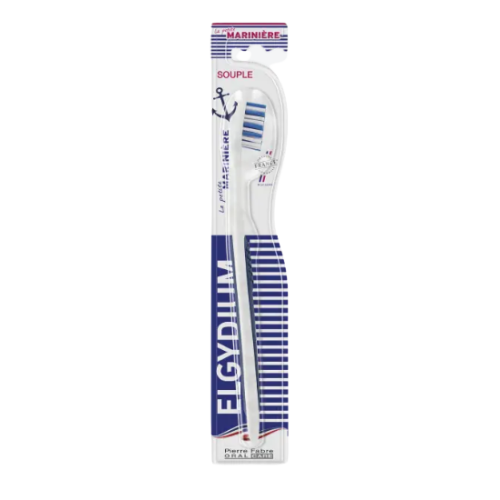 Brosse à dents Elgydium Marinière Souple, pour un nettoyage doux et élégant.