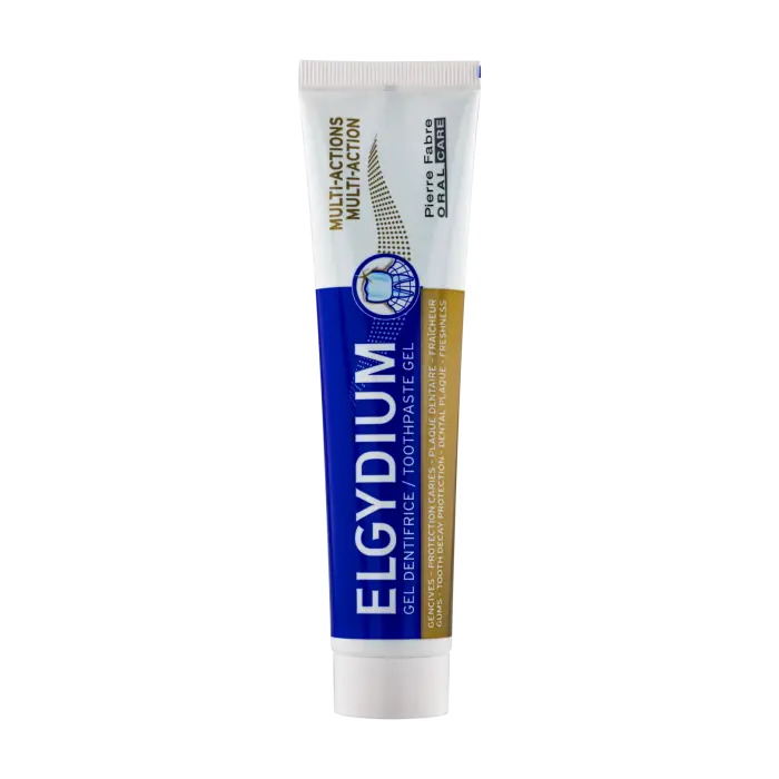 Dentifrice Elgydium Multi-Actions pour un soin complet des dents et des gencives.