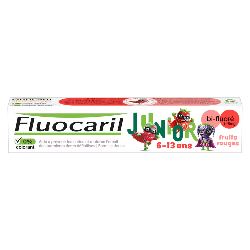 Le dentifrice Fluocaril Junior Gel Fruits Rouges 145 mg est spécialement conçu pour les enfants à partir de 6 ans. Il offre une protection efficace contre les caries tout en apportant un goût agréable de fruits rouges. Enrichi en fluor, il aide à renforcer l’émail dentaire et à prévenir les problèmes dentaires chez les jeunes enfants.