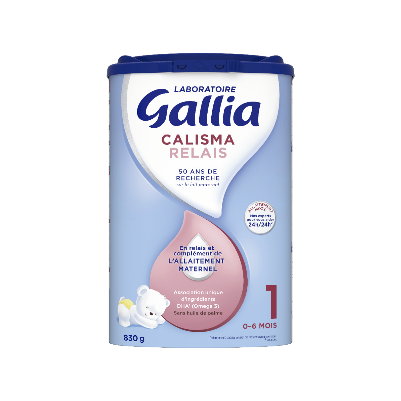 Lait Gallia Calisma Relais 1er Âge, adapté dès la naissance, en complément ou relais de l’allaitement.