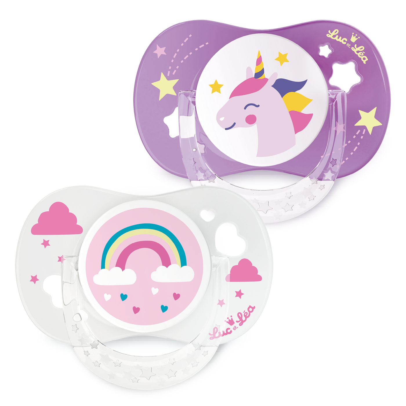 Luc et Léa Duo de Sucettes Anatomiques Licorne et Arc-en-Ciel