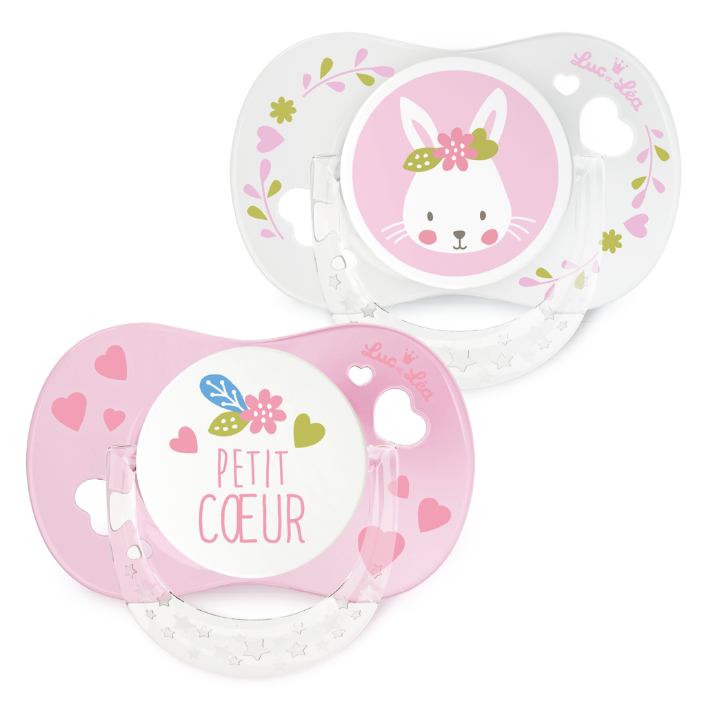 Luc et Léa Sucettes Anatomiques Lapin et Petit Cœur x2