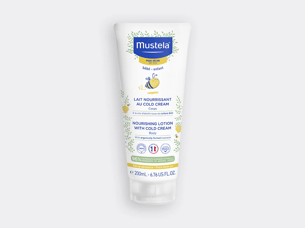 Le Lait Nourrissant au Cold Cream Mustela hydrate et nourrit en profondeur la peau sèche des bébés. Sa formule, enrichie en perséose d’avocat bio et en cire d’abeille, protège la barrière cutanée et laisse une peau douce et apaisée.