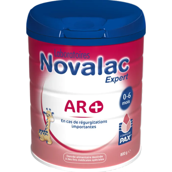 Lait infantile Novalac AR – 0-6 mois, formule épaissie anti-régurgitation pour nourrissons dès la naissance.