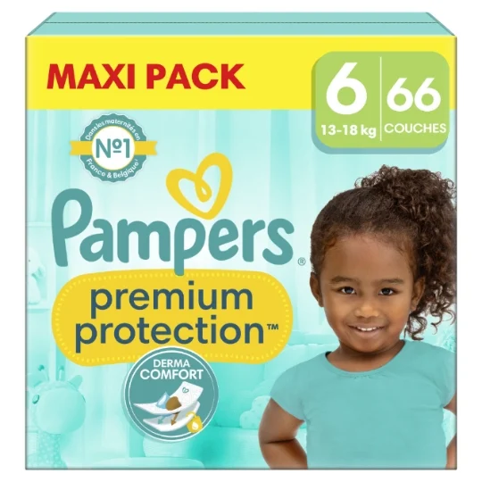 Couches Pampers Premium Protection, douceur et protection optimale pour les bébés entre 13 et 18kg).