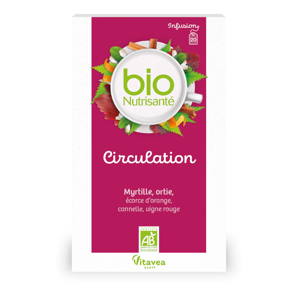 Stimulez votre circulation sanguine avec l’Infusion Circulation bio de Vitavea, idéale pour des jambes légères.